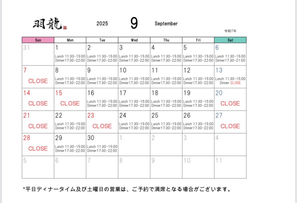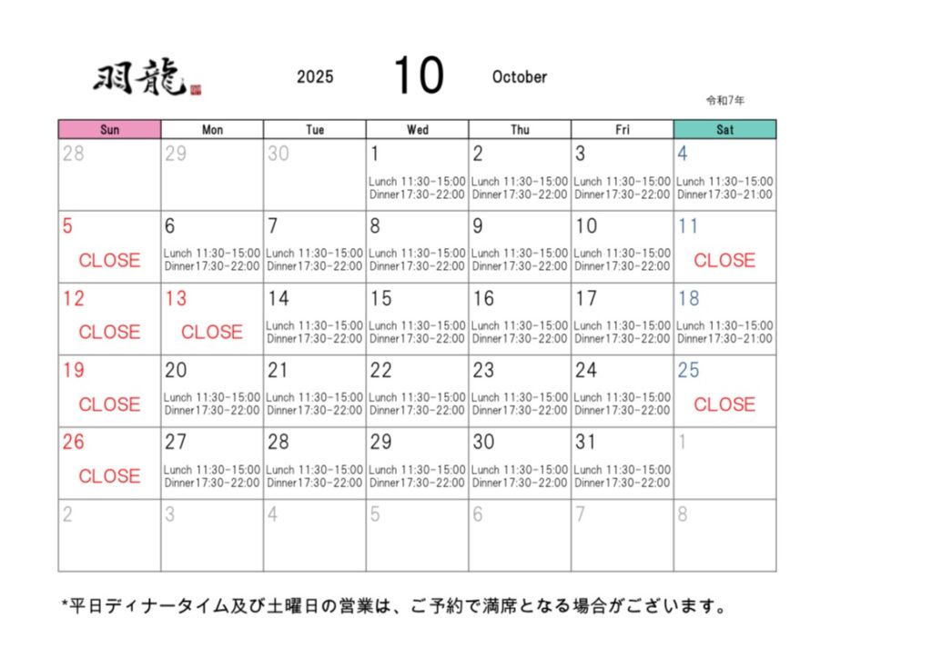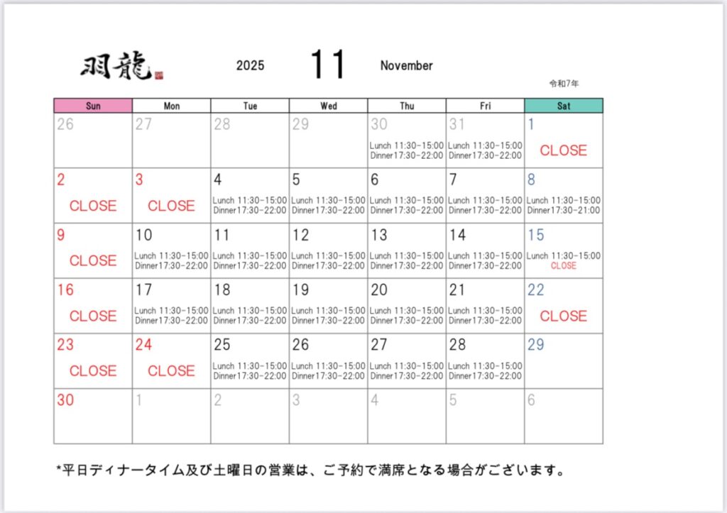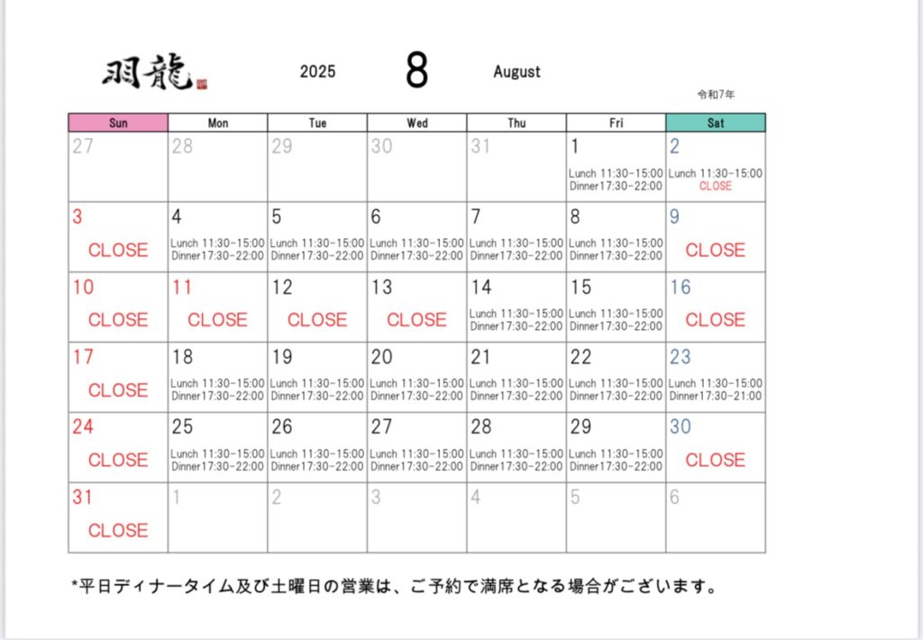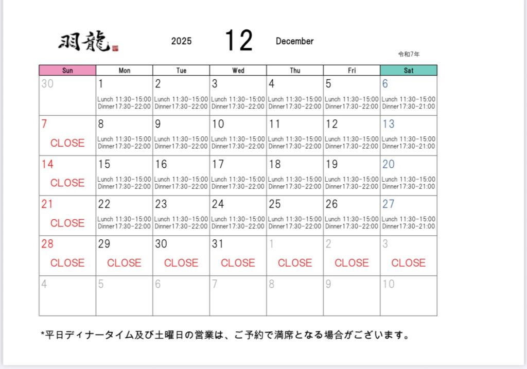 いつもChinaDining羽龍をご利用いただき誠にありがとうございます。